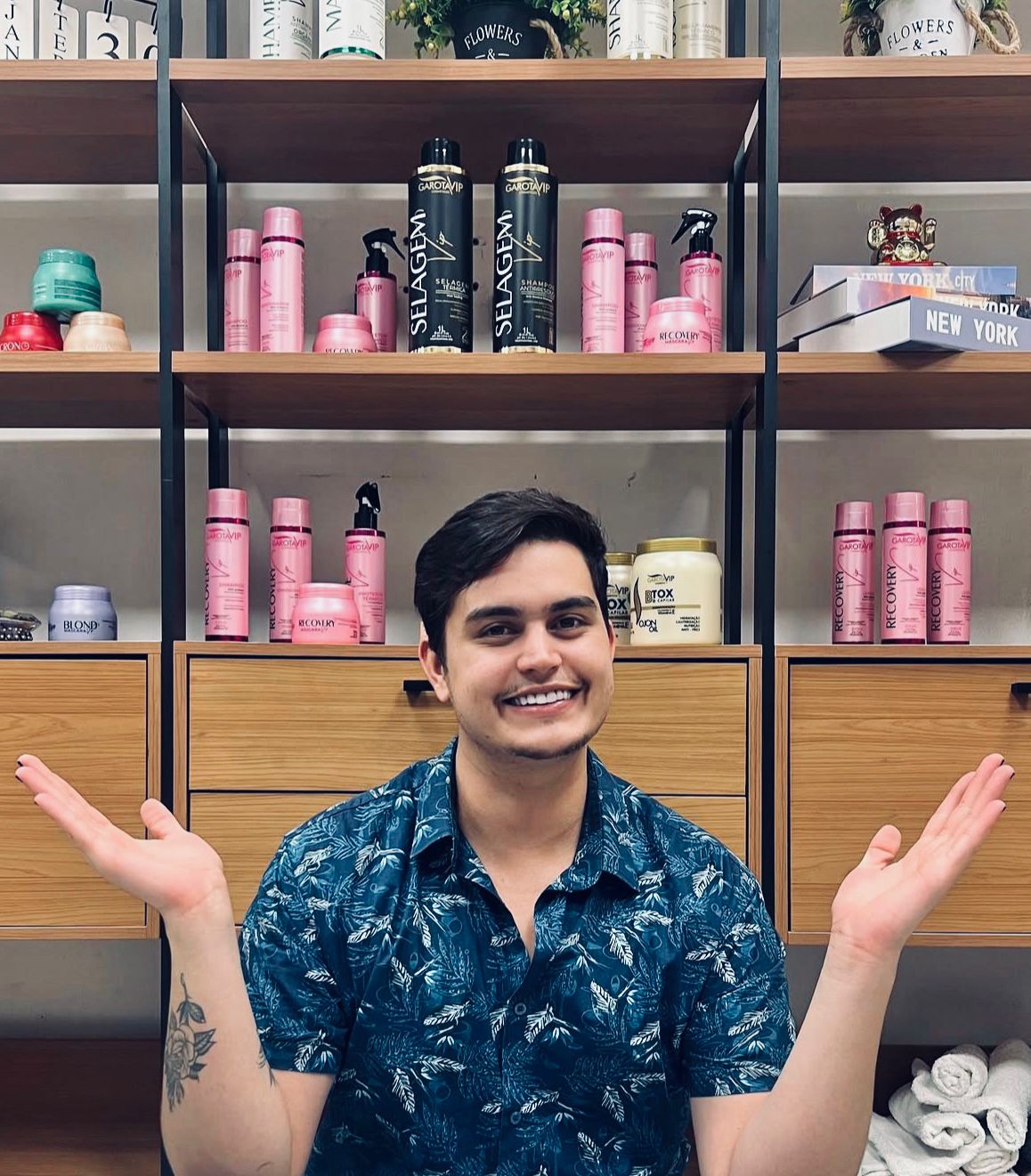 “Desde muito cedo, fui tocado pelo universo da beleza, inspirando-me em meu pai, também cabeleireiro.”